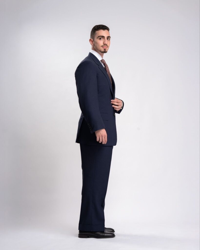 A bespoke suit has the following features: your pattern is just that – your pattern.. Of course, it is similar to everyone else’s pattern in that it has two legs for the trousers, two arms for the jacket, a collar, shoulders and sleeves. And, it is similar in that if you ask for a single breasted jacket, it will bear some resemblance to other customers’ single breasted jackets. But it is yours, in the sense that every detail of your measurements is captured, as well as what you ask for – wider shoulders, slightly longer sleeves, and so forth.