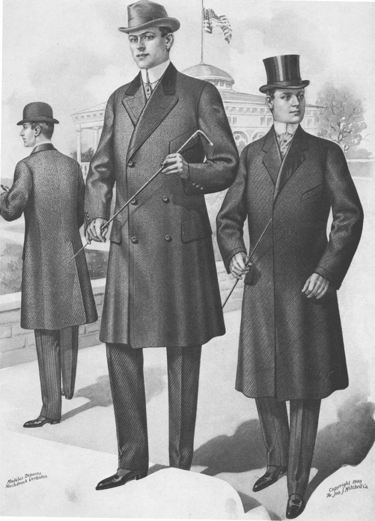 Is this a Crombie coat? It might be, if it is made by Crombie, but chances are people will call it that, because of the style. It does not have the velvet collar, so it would not pass muster as a Crombie, probably, even if it were made by Crombie – and there we have an interesting sort of conundrum.