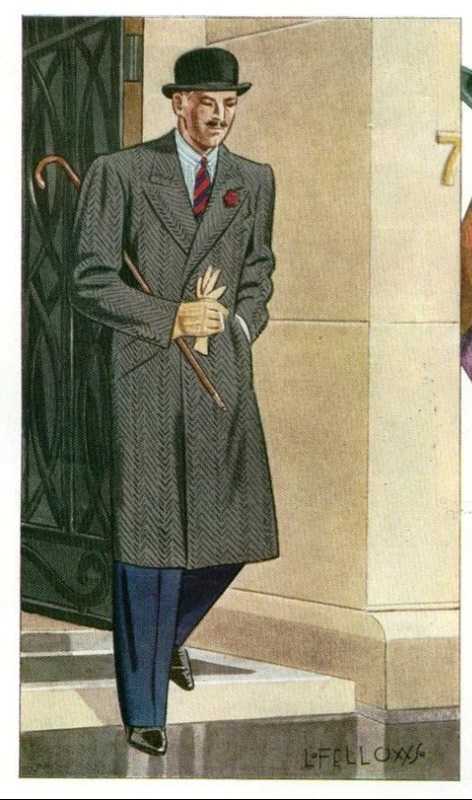 This coat was originally made for polo players to wear between chukkas. A casual coat, best in a light colour, will serve as well as a traditional top coat. Polo coats are double breasted, have flapped patch pockets, wide lapels and a half belt at the back. If your polo coat has a belt in front, it should be tied, not fastened. The ideal polo coat comes down a couple of inches below the knee, a bit longer than what you see in the picture. Also, note the turned back cuffs.